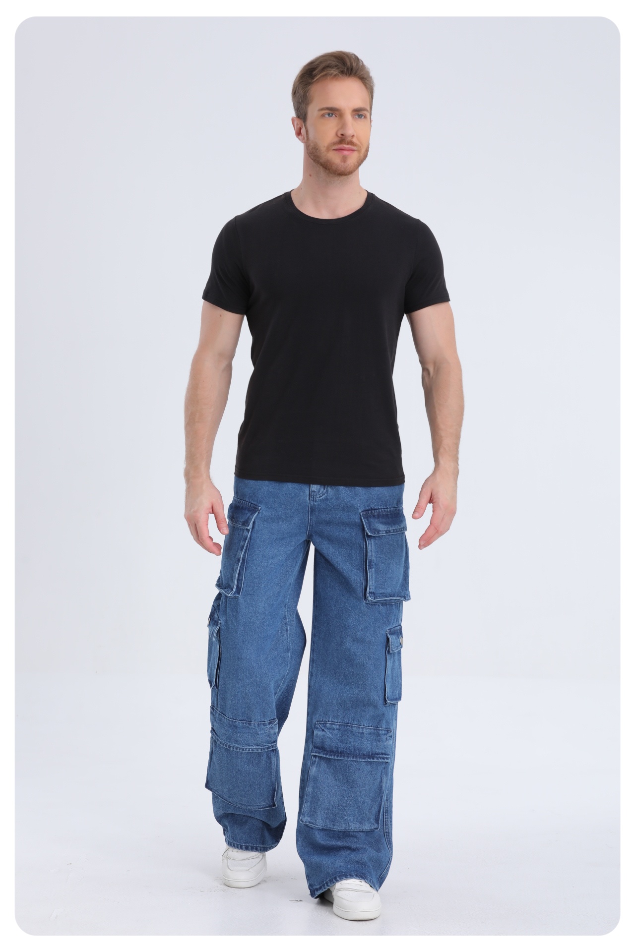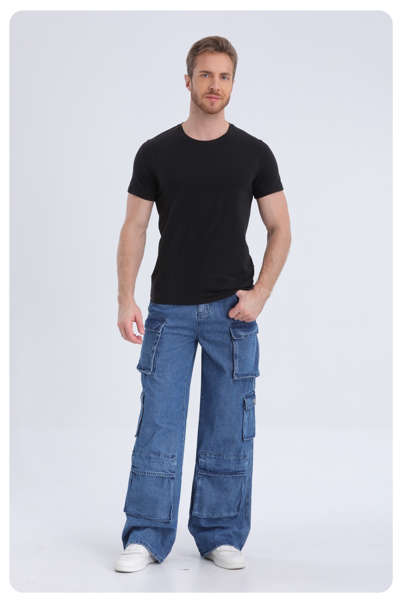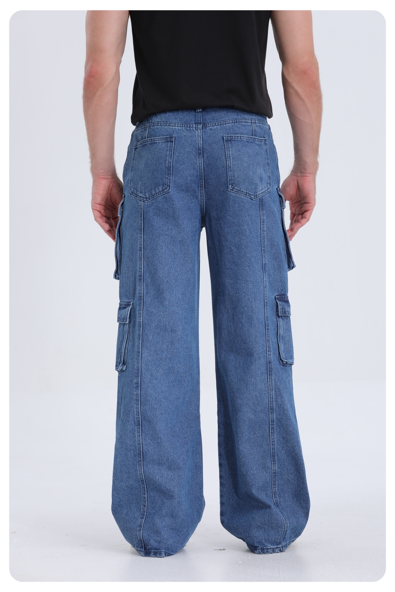 American high street multi-pocket washed loose jeans men and women design sense work trousers casual trousers